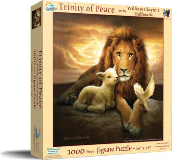 Immerse yourself in the breathtaking world of SunsOut's "Trinity of Peace 1000 pc Jigsaw Puzzle," a masterpiece by renowned artist William Clayton Hallmark, skillfully bridging elements of nature and religion to reproduce an astonishingly serene image. This dynamic representation of animals contrasted against a tranquil setting is no ordinary puzzling pursuit but an artistic exploration into the profound link that exists between man and nature. SunsOut puzzles are crafted with keen precision and design from long-lasting, environment-friendly recycled cardboard, guaranteeing perfectly interlocking pieces and eliminating the slightest frustration. Manufactured with dedication in the USA, SunsOut Puzzles reflect their commitment to safeguard the Earth, providing top-tier puzzling adventures using eco-friendly soy-based inks and recycled materials. The woman-owned small business guarantees full satisfaction, pledging to readily resolve issues concerning missing or damaged pieces, offering you the peace of mind warranted by their outstanding quality and superior customer service. Upon completion, the 26" x 26" "Trinity of Peace" becomes an awe-inspiring, conversational piece, emphasizing the stunning beauty of Hallmark's vision. Encased in a large full-color display box, this 1000 piece artwork set transforms into an elegant showcase of both your accomplishment and its stellar design. Thus, SunsOut's "Trinity of Peace" jigsaw presents an opportunity to revel in the artistic journey, embrace the thrill of the challenge, and endorse sustainable practices, culminating in a grand celebration of peace and beauty, all within your grasp.