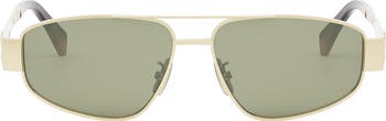Logo-detailed temples lend subtle distinction to a pair of Italian-made sunglasses featuring a sleek metal frame with a retro-inspired silhouette.