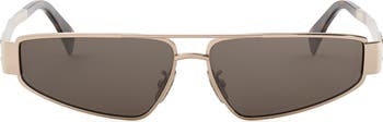 Angular frames and logo-branded temples bring a futuristic aesthetic to Italian-made sunglasses designed with adjustable nose pads for secure wear.
