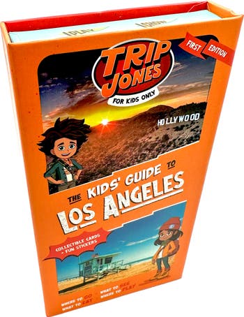 THE KIDS' GUIDE TO LOS ANGELES is the exciting new way to involve the kids in exploring LA. Each set includes collectible cards featuring the best places to eat, see, play and explore together. Also included are interactive stickers to turn the cards into a planning and collecting activity too. And because they are cards, NO PHONE IS REQUIRED AT ALL! Why is this guide for KIDS ONLY? Because it has been designed to hand directly to the kids and fully involve them in every part of exploring a city---before you go when you’re deep into planning, during the visit when logistics matter, and after you come home when it’s fun to share the adventures and memories with friends and family. Adults have lots of travel resources, and now kids have Trip Jones! EXPLORE: Go in-depth and experience new and interesting and sometimes astonishing facts about a place, or a topic. PLAY: Some of the most fun things you can do when in LA, from small playgrounds to big theme parks to just hanging at the beach. CHOW: All of these adventures are going to make you hungry and we have some great ideas to have a memorable meal. SEE: Some places just need to be checked out. There are quick experiences that may be less than an hour and others interesting enough to spend a couple hours. INCLUDED: 31 collectible cards, 6 sticker sheets in a collectible storage care with magnetic closure.