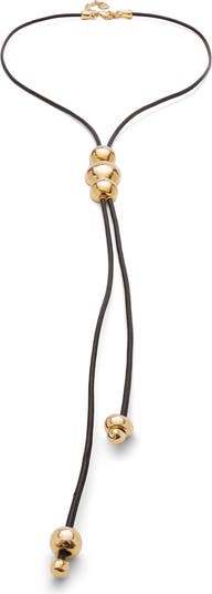 - Leather pendant with three 18k gold plated metal alloy beads