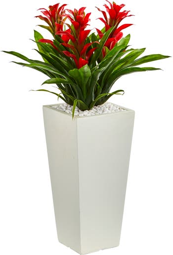 Triple Bromeliad Artificial Plant in White Tower Planter