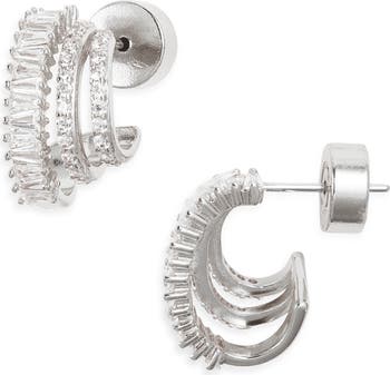 A triple-hoop design accented with sparkling cubic zirconia in varied shapes and sizes defines these elegant earrings that catch and scatter the light.