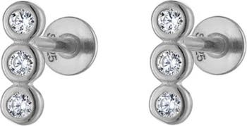 Triple Round Pavé Silver Stud Earrings