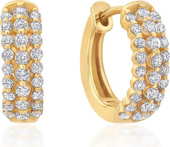 You'll catch the light with every move you make in these sterling silver huggies plated in high-polish 18-karat gold and detailed with a tripled-up row of glittering cubic zirconia.