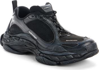 This sneaker balances restraint and impact, keeping the accents tonal while letting the sole steal the spotlight. A triple-layered stack built from running, basketball and track-inspired molds creates the signature foundation, with bicolor hiking-boot laces and a distressed finish adding bite.