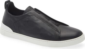 This Secondskin sneaker is crafted from soft, lightweight leather for flexibility, while the brand's triple-crossed elastic ensures an easy slip-on fit. This Italian-made shoe is built with a subtle pull-tab and complemented by a white rubber sole.