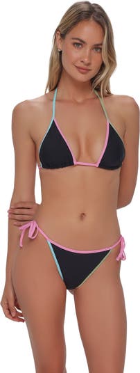 The Trisha Triangle gives a fresh spin to a classic bikini top. She features removable cups for custom shape and support, while her contrast binding delivers a playful pop. Soft, adjustable ties hold her in place, keeping you secure from surf to sunset.