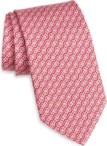 Modeled after the wrought-iron gate of Ferragamo's original Florentine headquarters, interlocking Gancini are arranged in regimental stripes on this handsome Italian-silk twill tie.