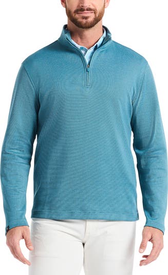 A soft, textured knit boasts narrow stripes that bring subtle visual depth to this quarter-zip top that's a sporty, modern addition to your layered weekend look.