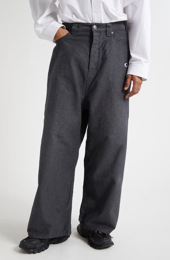 These runway-featured jeans are more than just oversized—they’re oversized with intention. Printed to channel the cozy familiarity of sweatpants, their dramatic silhouette and thoughtful detailing including bold logo embroidery make a compelling case for boundary-pushing luxury.