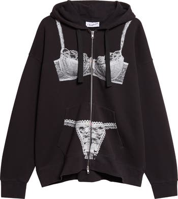 Forget subtle—this oversized full-zip hoodie makes a statement. The New York brand gives underpinnings top billing with a cheeky front-to-back lingerie print. Soft cotton French terry keeps the look grounded, but let’s be real—this piece is all about turning heads. Wholly owned by Comme des Garçons, this brand is part of Dover Street Market Paris, created with the goal of bringing emerging brands to market.