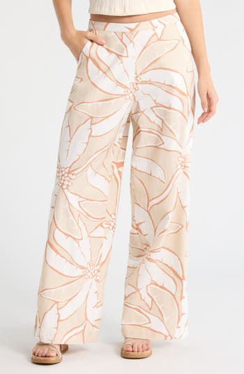 A bright tropical print covers these lightweight pants that are perfect to pull on after a long day in the surf or even just a lazy stroll along the boardwalk.