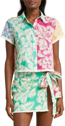 Tropical Chita Colorblock Cotton Cover-Up Shirt