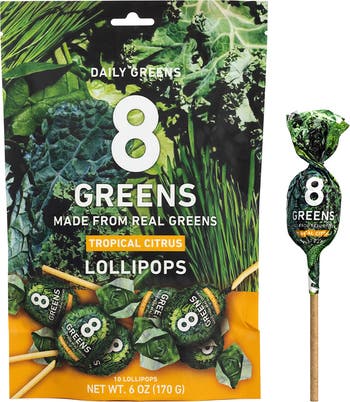 What it is: Tasty, citrus-flavored lollipops packed with eight real greens to provide energy, immune support, antioxidants and overall well-being.