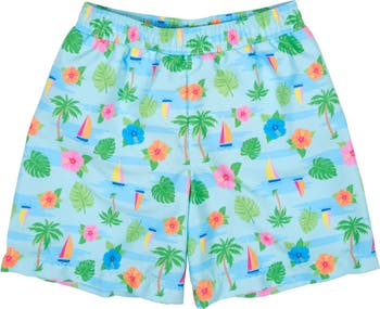 Bring a splash of sunshine to his seaside adventures with these multicolor tropical print swim trunks. Crafted from lightweight, quick-drying polyester supplex, they’re made for comfort and carefree play in and out of the water. An inside waist drawstring ensures a secure fit, while a built-in jock liner provides all-day ease. Perfect for pool days, beach vacations, and warm-weather getaways.