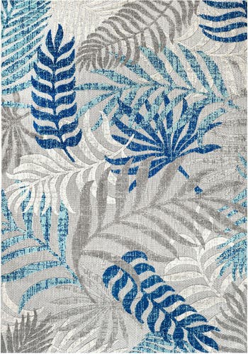 Whether you live in a tropical beach retreat or just love jungalow style, the allover palm frond pattern of this rug brings the jungle home. Overlapping palm tree branches create a rich pattern of blue, coral-red yellow and orange. The pet-friendly and kid-proof flatweave design makes it easy to clean.