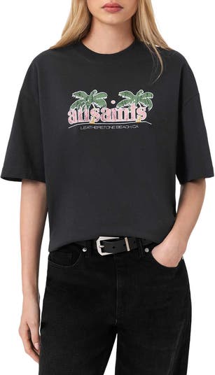 A lightly faded tropical logo pops against the black background of this slouchy T-shirt made from breathable cotton in a laid-back fit.