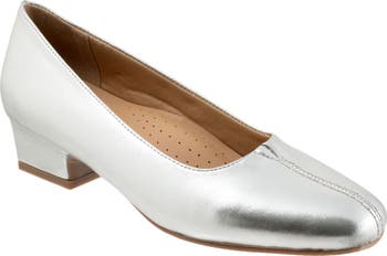 A classic pump features a supple leather upper and soft brushed cotton lining. A hidden center gore ensures a perfect fit.