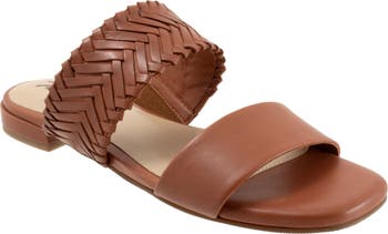 Beautifully woven leather form a stylish herringbone design on this slide sandal set atop plush memory-foam cushioning.