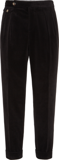 Refined cashmere fibers enhance the traditional texture of cotton corduroy, accentuating its softness, warmth and sheen. The presence of an elastic fiber ensures maximum comfort. The knee-length inner lining enriches and complements the garment.