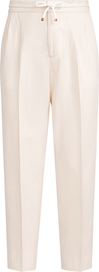 The sporty feel of drill is delivered in a cotton and linen version with a compact yet lightweight texture that showcases the classic diagonal twill weave. The linen fibers enhance the fabric with a slightly mottled effect, accentuating its casual, versatile nature.