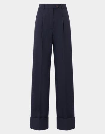These high-waist navy blue tailored trousers are designed in faille-effect fabric for a wide-leg fit.