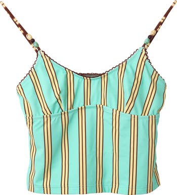Make a splash in this tankini top patterned with stripes and cut to a cropped hem.