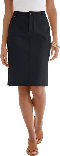 Premium stretch denim and a no-gap contoured waistband give this denim skirt a curve-hugging fit that’s full-on flattering. The look is relaxed and refined, making it the perfect denim skirt to wear to the office or on weekend outings.