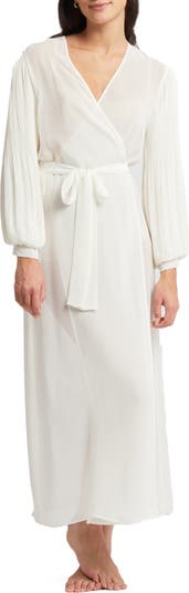 Wrap yourself in elegance with a lightweight robe designed with pleated sleeves in a semisheer fabric.