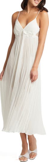 Dainty flowers along the bustline and airy mesh panels bring a touch of romance to a lightweight woven nightgown that elevates your bedtime routine.