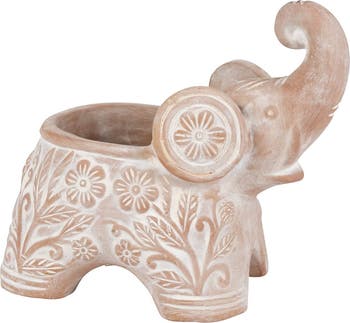 Announcing the arrival of your green thumb is the Trumpeting Elephant Planter. Handcrafted of terracotta, then whitewashed to accentuate the beautiful details, this planter looks fantastic in the garden, and even more stunning as a table centerpiece.
