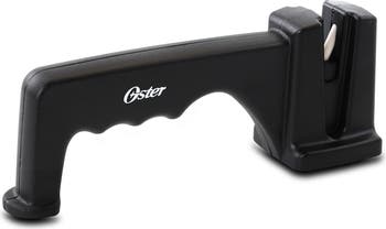The Oster Trussville Knife Sharpener in Black is great for sharpening a vast assortment of blades. This kitchen tool is ideal for dull blades exposed to everyday use as well as large knives fit for specialized cooking. The Non-slip base and ergonomically designed handle allow for a safe and secure grip while sharpening. The sharpener is crafted from light weight plastic, making it convenient to move and adjust the angle for easier sharpening.