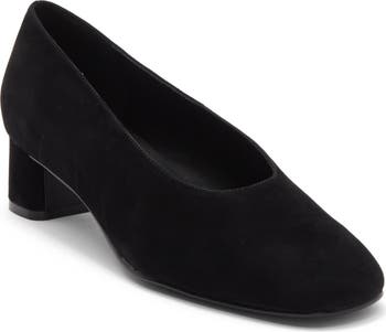 Exude timeless polish in this soft suede pump framed by a classic round toe and a modest wrapped heel.