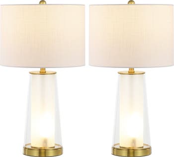 The frosted glass finish on our versatile modern lamps make them the perfect neutral for almost any interior. Turn on the second bulb in the base for extra glow, or use it as a night light. Add low-key farmhouse style to the bedroom, living room, or dining console with this chic pair of lamps.