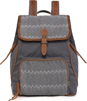 This durable washed canvas backpack features genuine leather trim and a classic outdoor inspired design. A laptop sleeve and multiple pockets provide organized storage for daily use or light outdoor trips.