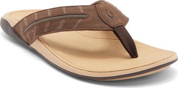 Premium waterproof leather stands up to ocean splashes and sudden rains in a casual, comfortable flip-flop that puts supportive cushioning under every step.