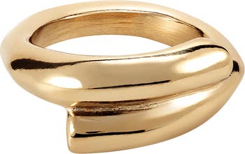 - 18K gold-plated ring with a tubular, minimal silhouette that meets in the center