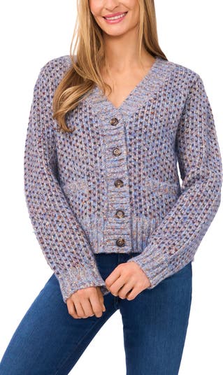 Tuck stitching lends dimension to this traditional and cozy 'Grandpa' cardigan knit from colorful marled yarns.
