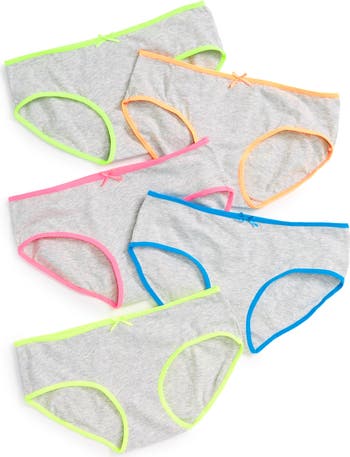 A variety pack contains hipsters cut from stretchy cotton in a mix of solids and patterns.