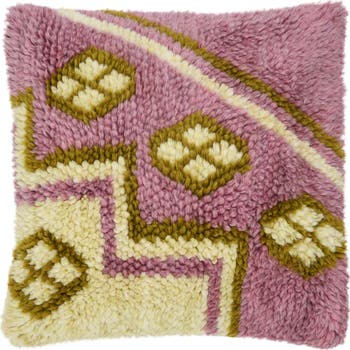 - This bold, tufted pillow showcases genuine multicolor New Zealand wool in a stunning geometric design