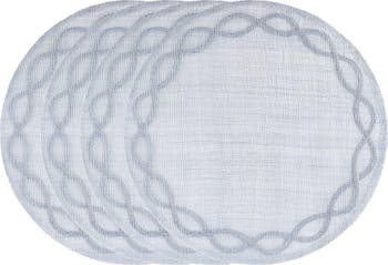Inspired by the formal gardens of Paris, these placemats have a soft, airy weave and an appliquéd border that elevate everyday dining.