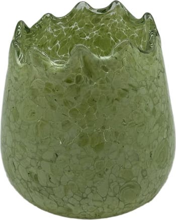 The Tule vase is made using recycled glass by artisans in Guadalajara Mexico. Forest Green Colors. Holds Water.