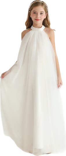 The Ocala dress is a stunning creation designed to evoke grace and elegance. This long, flowing dress boasts a soft white hue that exudes purity and sophistication, making it perfect for any special occasion. The layered white hemline adds depth and movement, giving the dress a light, airy feel as it cascades beautifully. With its sleeveless design, the dress is both comfortable and stylish, offering the perfect balance of charm and ease.