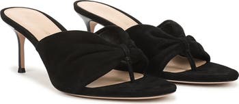 Gathered straps amplify the everyday sophistication of this versatile sandal set on a slender heel.
