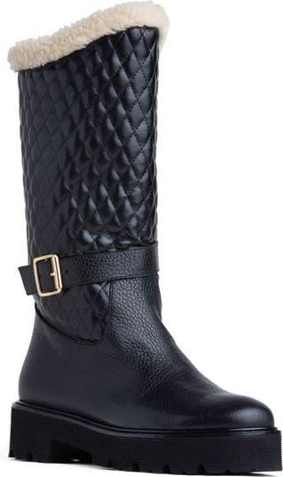 This moto-inspired bootie is upgraded for cold weather with quilted insulation, faux-fur lining and a grippy lug sole.