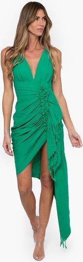 Taking inspiration from resort-ready sarongs, JBQ’s Tulum Dress is gathered in knotted accents for a flowing high-low hem.