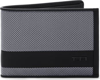 Signature logo hardware and mixed textures distinguish a slim wallet furnished with plenty of pockets perfect for securing your cards and cash.