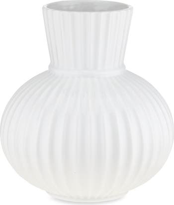 An artful sculpture on its own, this vase is cast in fine porcelain with distinctive grooves that create a balance between soft and stringent.