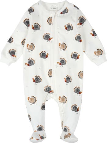 A festive print keeps baby on-theme in a cuddly footie made from stretch-enhanced organic cotton with a two-way zipper for easy dressing and quick diaper changes.